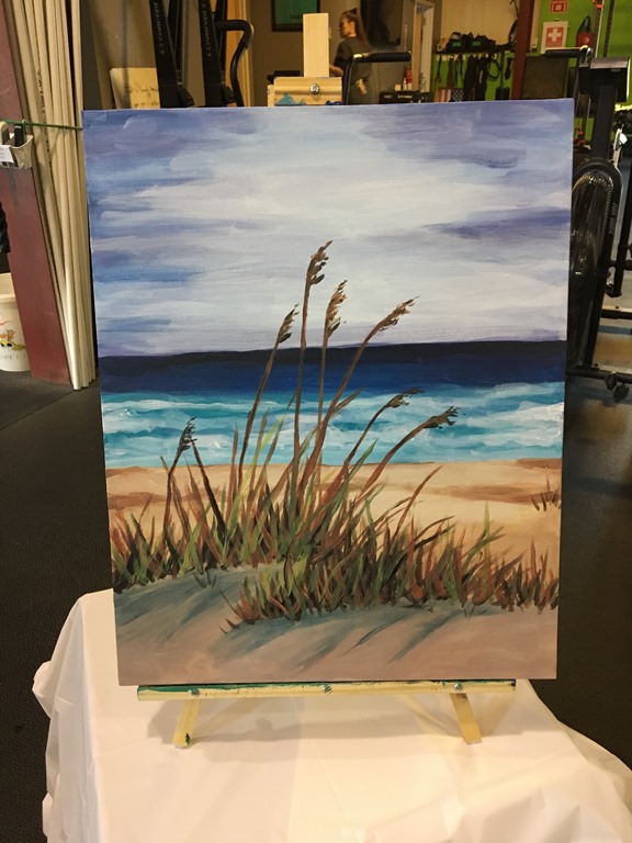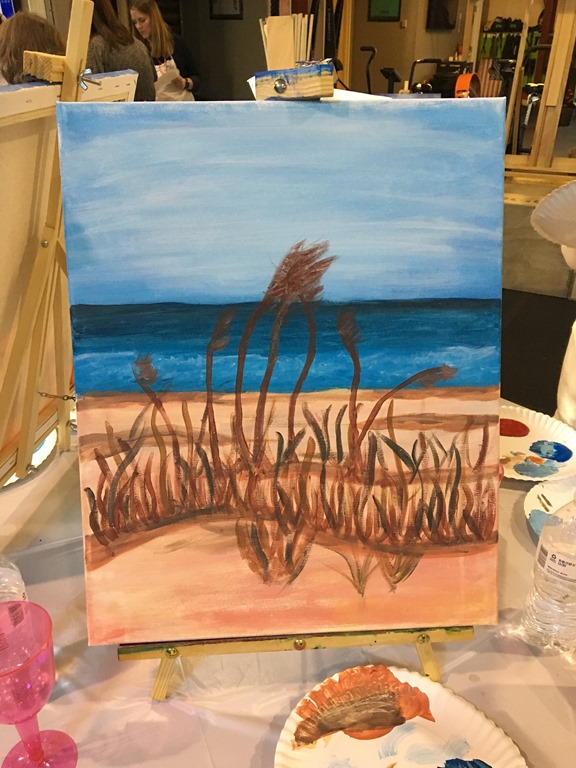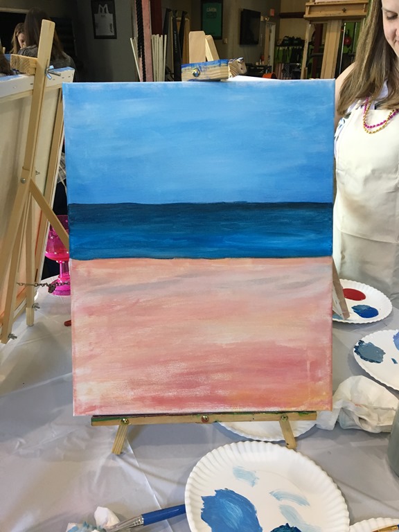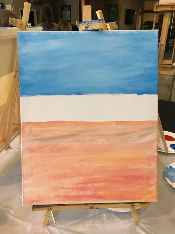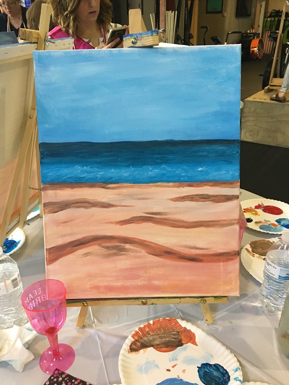 For those who are not familiar with Paint Night, the instructor takes you step by step, from mixing the colors, to making sure that you get the depth in the painting. I made sure to take photos of each of those steps. It looks like I was getting the hang of the sky, sea, and sand!