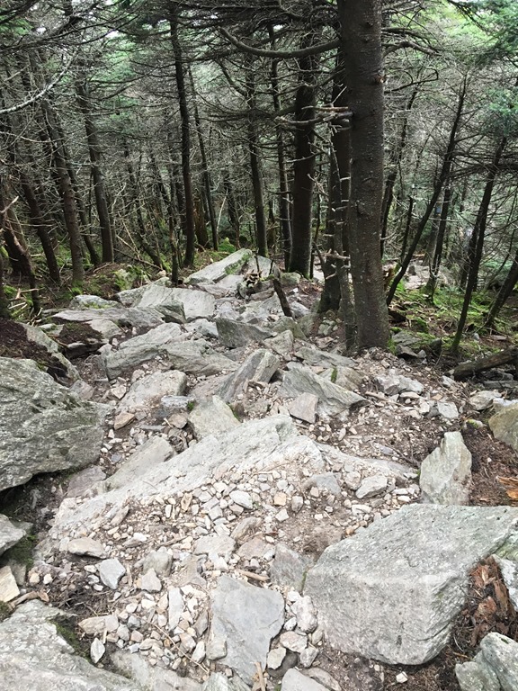 The trek down was no easier than going up. It felt like the trail was going up more than it was going down. We did meet some through-hikers along the way, though, and they gave us some encouraging words on hiking the AT. We met one couple who had gotten to that point in 2 months! Now THAT’S impressive. We found a lookout that was able to get us some awesome views of the green mountains.