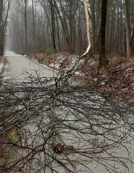 The latest one was at a rail trail near my parents house. There was still some slush and ice on the ground (and a downed tree) but we made it!