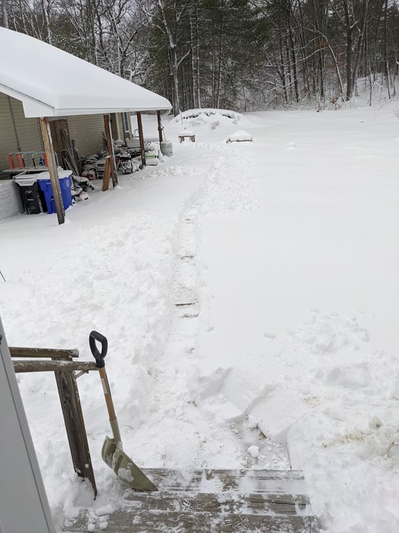 I worked on shoveling in front of the front door and making a path to the garage and the shed. David did the hard work of snow blowing our 300 foot driveway. Thank goodness it’s paved now!