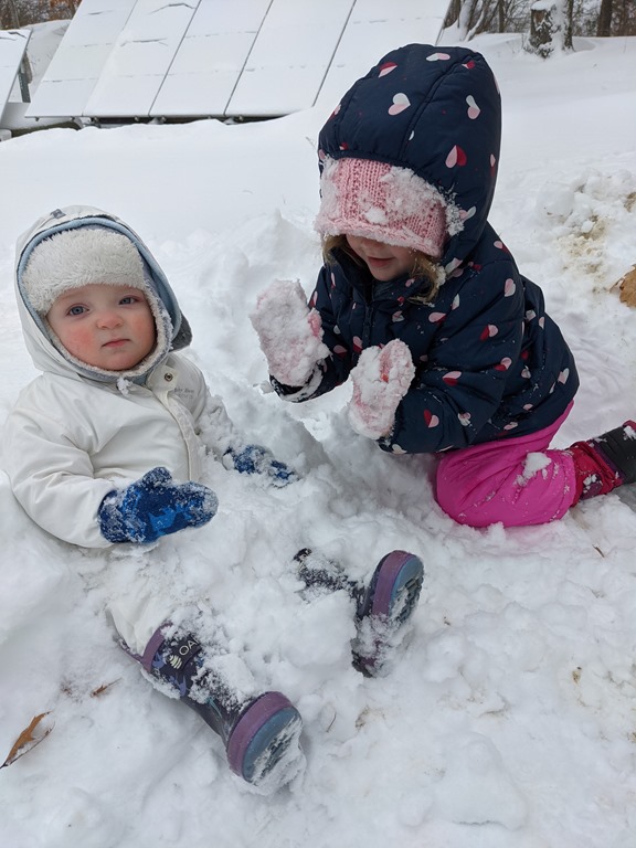 I also took Eleanor and Lincoln outside to play for a bit. Eleanor enjoyed throwing snowballs and making snow angels, and Lincoln just sat in the snow and took everything in. He is such a patient and laid back kid. ![]()