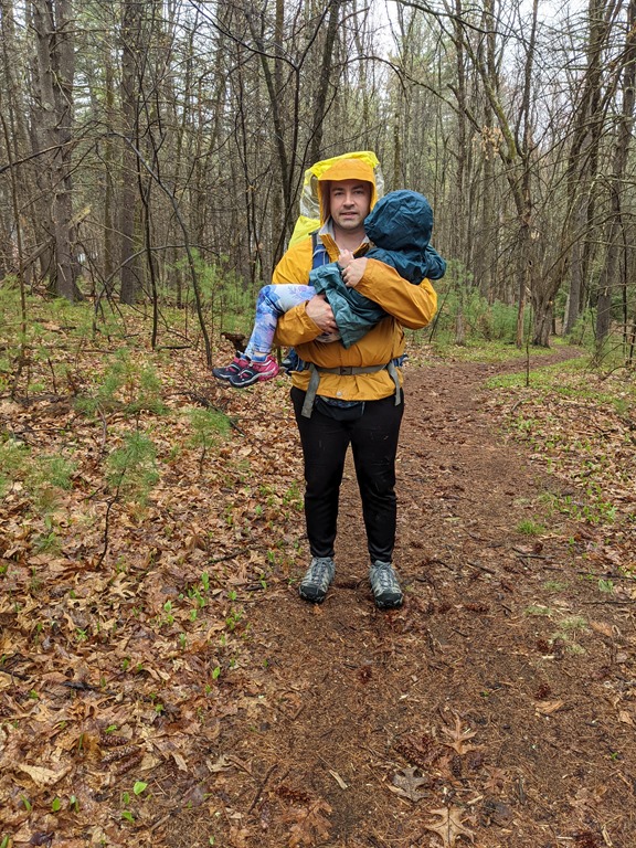Not one to be left out of the fun, David asked if we could go again on Sunday, even though the weather was less than ideal. But that just meant the rain kept everyone away because we had the whole place to ourselves. With Lincoln in the backpack, we were actually able to make it around the entire property; a little under 2 miles. We saw the old cranberry bogs, an old well and even some beaver dams.