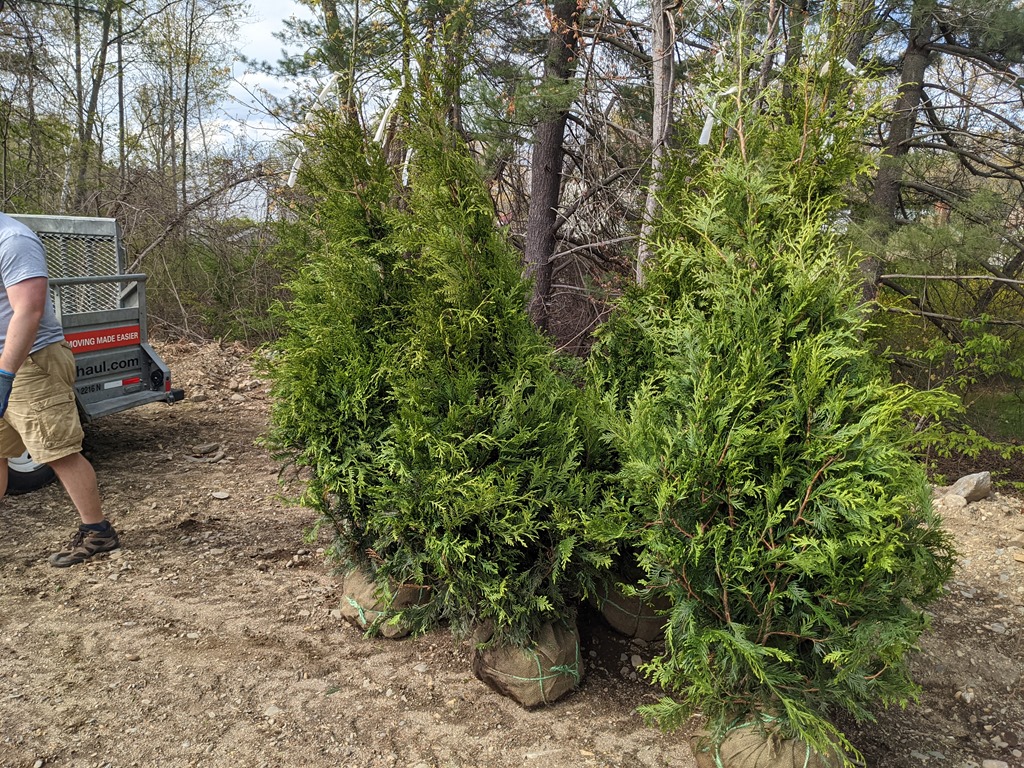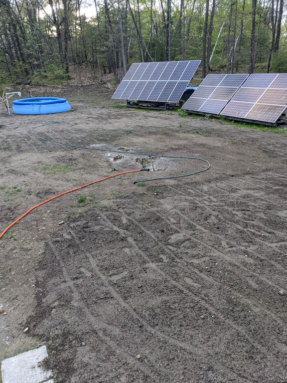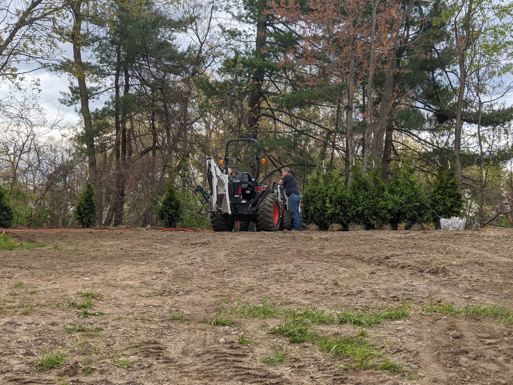 At the end of April a friend of David’s helped us scrape down a bunch of berms on the property so that we could extend the yard and then flatten the soil. We then purchased a bunch of loam and more machinery to make it easier to grow grass (our yard is full of rocks and rather sandy soil). We also purchased some Green Giants to line the yard that faces our neighbors. Since Mother’s Day weekend, we’ve been watering it twice a day and I’m happy to report that we have some grass poking through! I’m so excited to see how well this will all turn out.