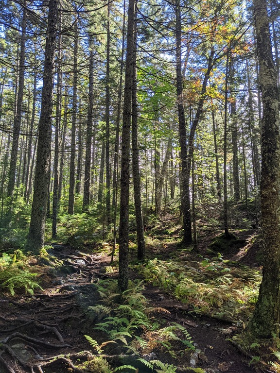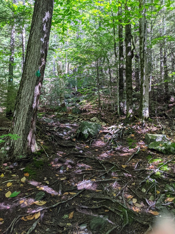 The first half up is gradual and rooty, but not too much of a challenge for us.