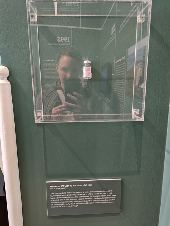 There were exhibits about life on the island as well as the seafaring aspects (hence the giant Fresnel lense.) There was a room that highlighted big moments in history, beginning in the early 20th century. Of course Jaw’s was mentioned, and the most recent piece of history was from 2021: a vial of the Moderna Covid-19 vaccine.