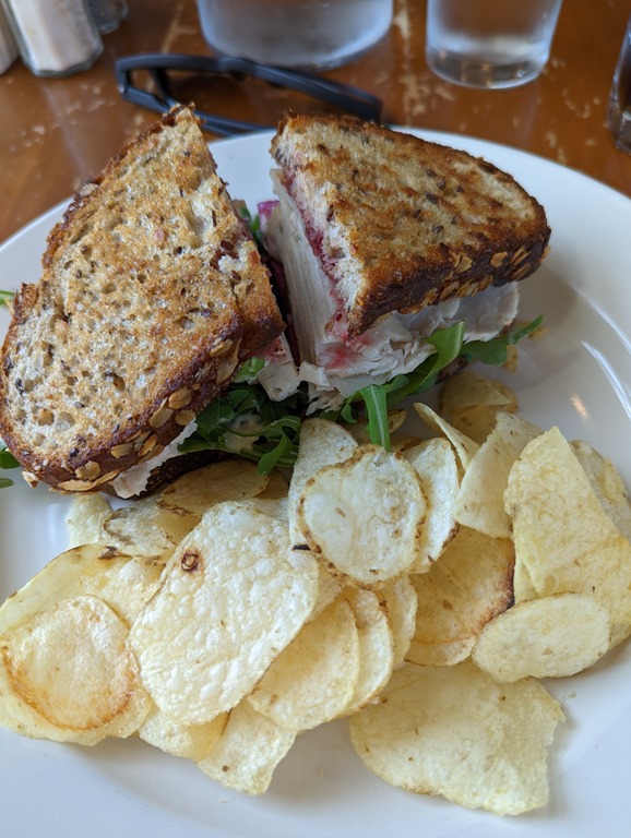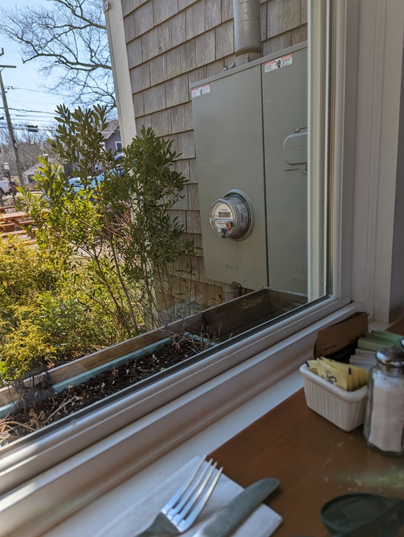 After the museum, I walked around Vineyard Haven, stopping in to Chicken Alley Thrift Shop, then walked about a mile to the Little House Café for lunch. I sat by the window and dug in to my new book. ![]()