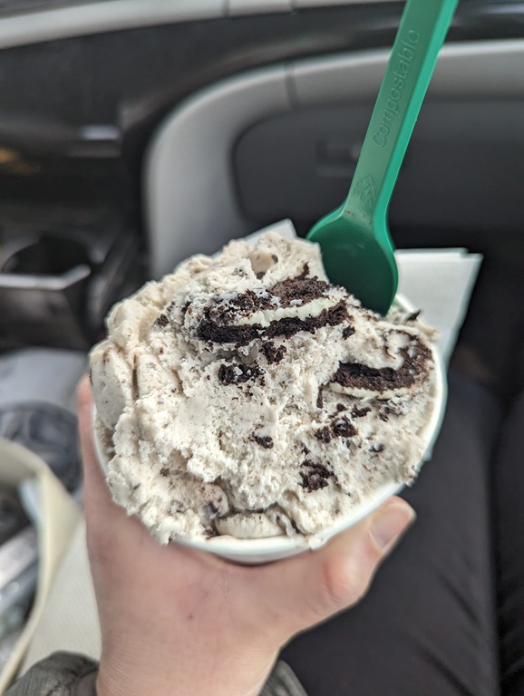 I had intended to have dessert there (I had my eye on the carrot cake) but when David mentioned going out for ice cream instead, I had to give in to my real craving. You have to realize though that it’s tough to find local ice cream shops open during the winter. We almost went to Dairy Queen but I found the Ice Cream Factory in Townsend! I ordered the Oreo frozen yogurt and David got the peanut butter Oreo ice cream. The perfect ending to a wonderful afternoon.