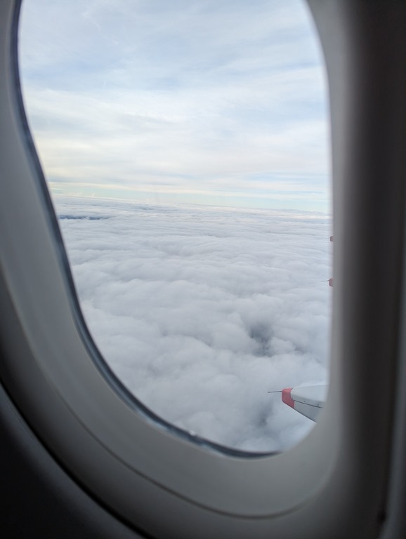 It was blue skies when we got above the clouds and the 2 hour flight to London was uneventful. We had a 5 hour layover at Heathrow and had a late lunch/early dinner before our flight at 7PM. The time flew by actually.