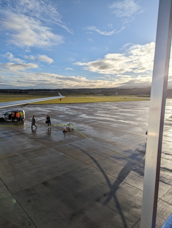 It was a cold and foggy day and was even snowing a bit when we left. Our first flight was at 12noon. I should also note that Inverness is definitely the smallest airport I’ve ever visited. It took about 10 minutes to get through check in and security.