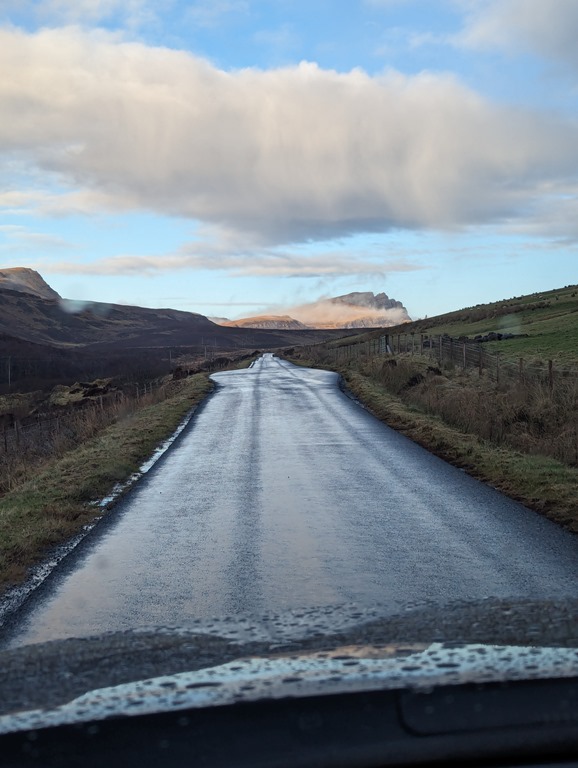 On the way back, we stopped in Portree, hoping to find some dinner. Since it’s the off season not much was open. We went to the Isles Inn and enjoyed some beer and appetizers. I had the carrot and curry soup and David had the ham and chicken terrine. Both were delicious.