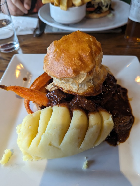 After we visited, I attempted to drive the car, and while driving on the opposite side wasn’t difficult, the narrow two-way roads had me a bit nervous. I drove from Culloden to the Clava Cairns (about 2 miles) and that was enough for me, haha. After seeing the 4,000 year old structures, we looked for a spot for a late lunch. David found the Cawdor Tavern and it was exactly the kind of place I had envisioned having a meal in while we were here. I had the Scottish steak and Orkney pie and David had the burger. Another fantastic meal.