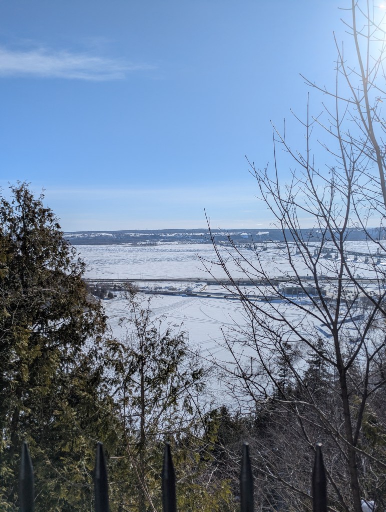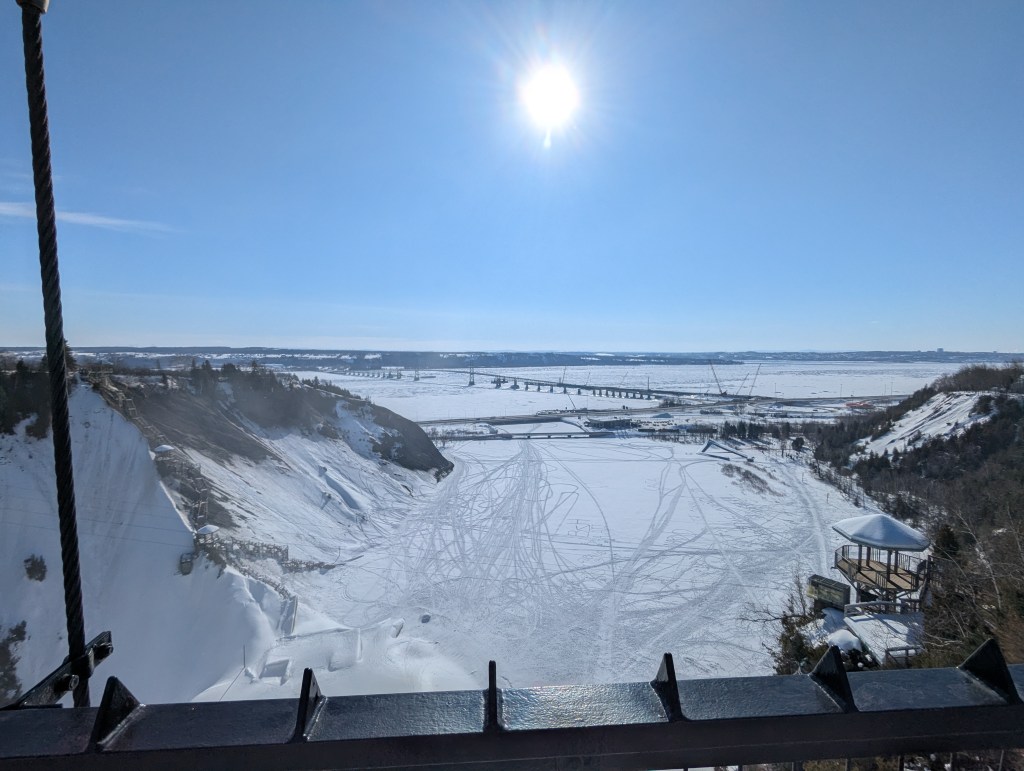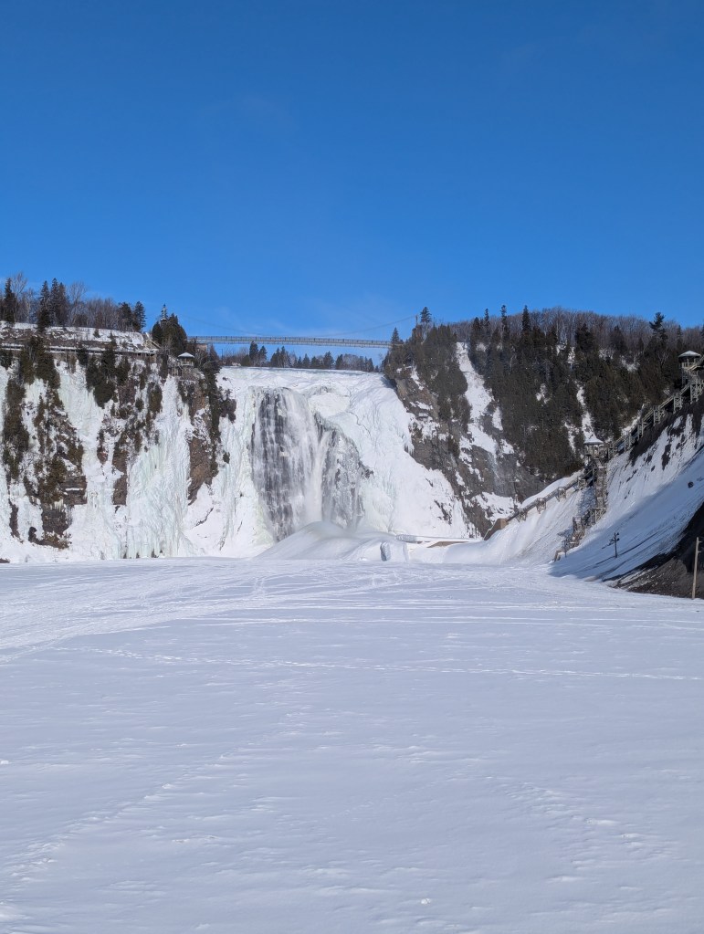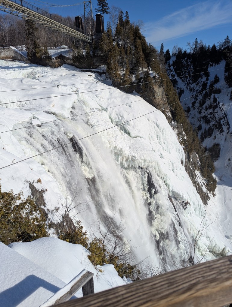 Monday morning, we headed over to Montmorency Falls for when they first opened up. I’m glad we did because it got busy! We walked around the bottom of the falls and got some pictures (really cool with everything being frozen over). Then we drove up to the top of the falls and walked over the bridge. Fun family fact: my grandmother’s brother was married at the falls in the early 50s.