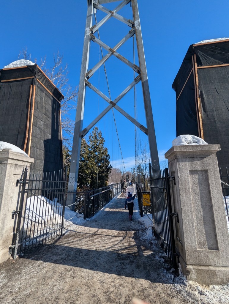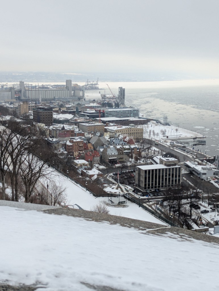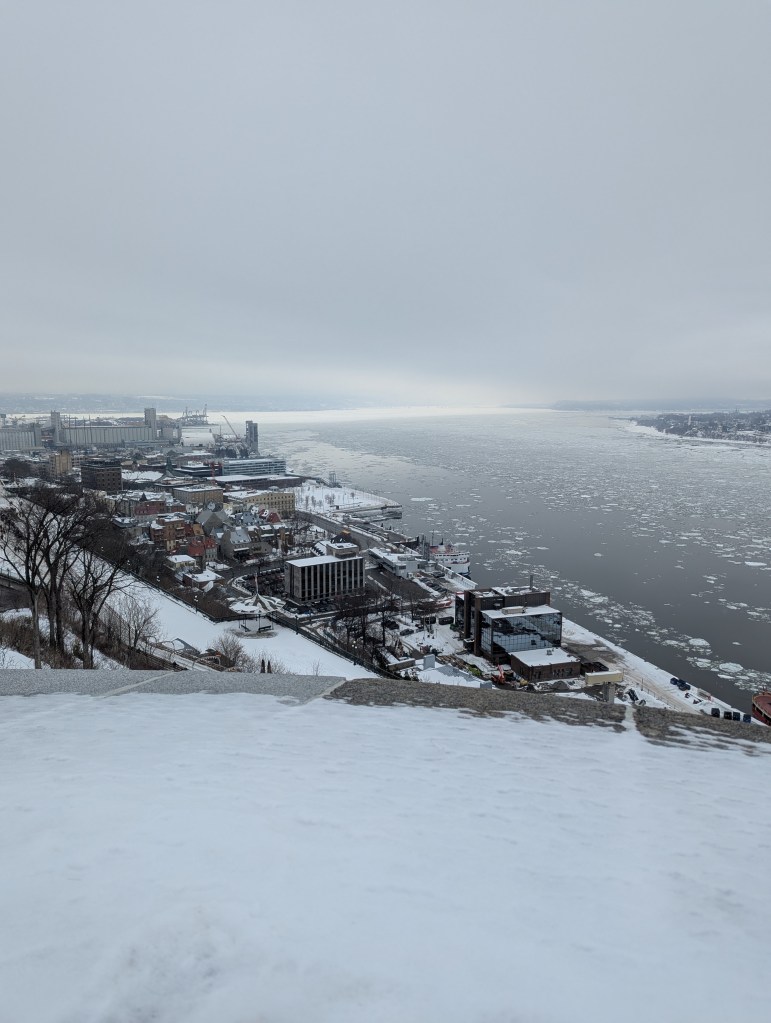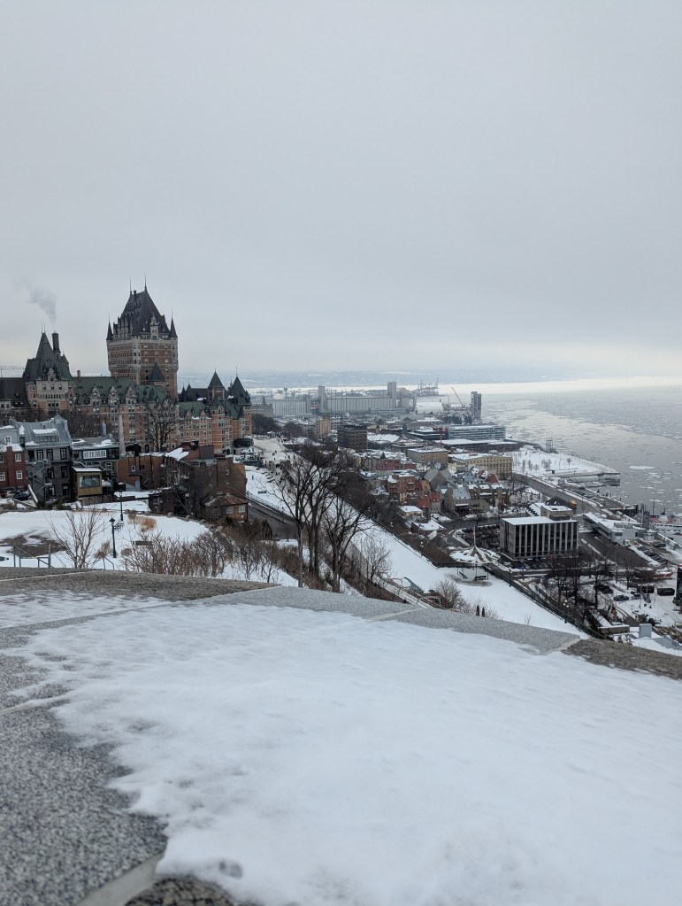 Monday morning, we headed over to Montmorency Falls for when they first opened up. I’m glad we did because it got busy! We walked around the bottom of the falls and got some pictures (really cool with everything being frozen over). Then we drove up to the top of the falls and walked over the bridge. Fun family fact: my grandmother’s brother was married at the falls in the early 50s.